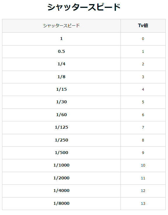 Tv=13-2=11(Tv値11は、シャッタースピード1/2000秒)